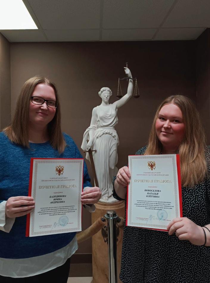 Информация о награждении сотрудников, ответственных за работу архивов районных судов города Санкт-Петербурга: В 2024-2025 годах Судебным департаментом при Верховном Суде Российской Федерации по представлению Управления Судебного департамента в г. Санкт-Петербурге были награждены десять сотрудников, ответственных за работу архивов районных судов города Санкт-Петербурга, знаками отличия СД при ВС РФ «За усердие» I и II степени, почетными грамотами СД при ВС РФ.